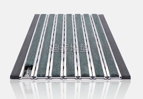 铝合金地垫,除尘地垫铝框架采用Alcoa高精度纯铝耐腐蚀防锈硬质铝合金,侧面高度达到10MM±1,铝合金壁厚为1.5MM±0.1,其承重力在标准滚动下可达1500kg-2500kg/㎡不变形,承受力强。面料采用Miliken美利肯:表面surface:ISO242/DIN61151 棉 抄线pile yam:cee83/623100%棉底backing:iso2424 pvc 毛高pile height:iso 1776/DIN54325 6.0mm毛重pile weight:ISO8543 750g/m2 隔音性 sound insulation:iso140/8 DIN52210 通过pass 阻燃性flammabiliy rating:BS4790 DIN102 T14 B2/ta/t2 pass通过B2/TAT2.面料色彩丰富,可根据客户需要灵活搭配。框架组合连接用于国家环保PVC材料专业设计结构连接确保运输清理方便,产品适合放置于高级石材或地砖表面不用开槽,外光经过本公司专利设计使用方便。